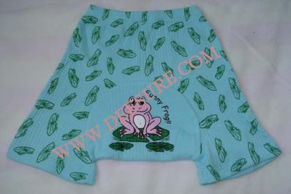 กางเกงก้นบาน สีฟ้าลายกบน้อยบนใบบัว ผ้าร่อง...